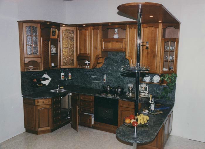 Заказать кухни с бар-стойкой любых размеров и дизайна стало проще. Стандартов у нас нет - все индивидуально. Также, мы поможем подобрать дизайн и внутренние наполнение для кухни с баром. Кухня с баром делается из массива натурального дерева. Массив дерева - дуб, ясень, клен, сосна, ольха, липа. Деревянная кухня - экологически чистая и долговечная. Изготовление кухни из дерева возможно: