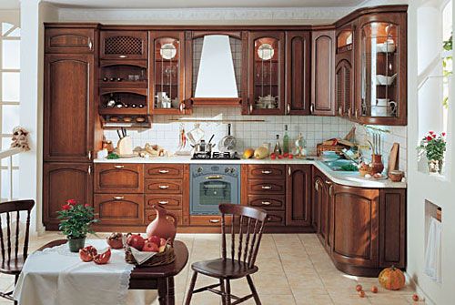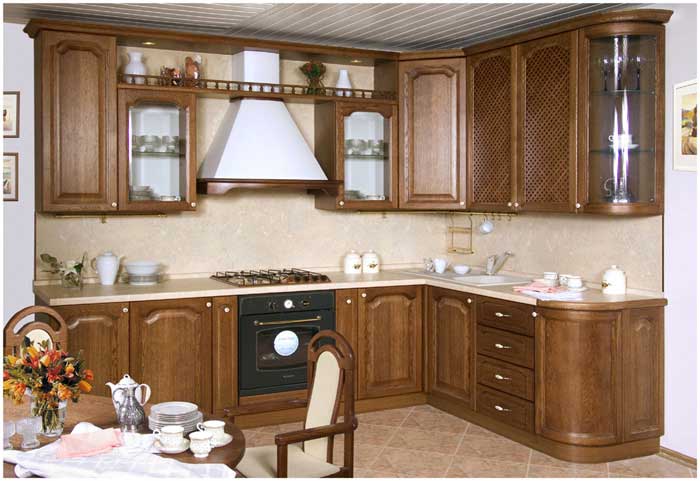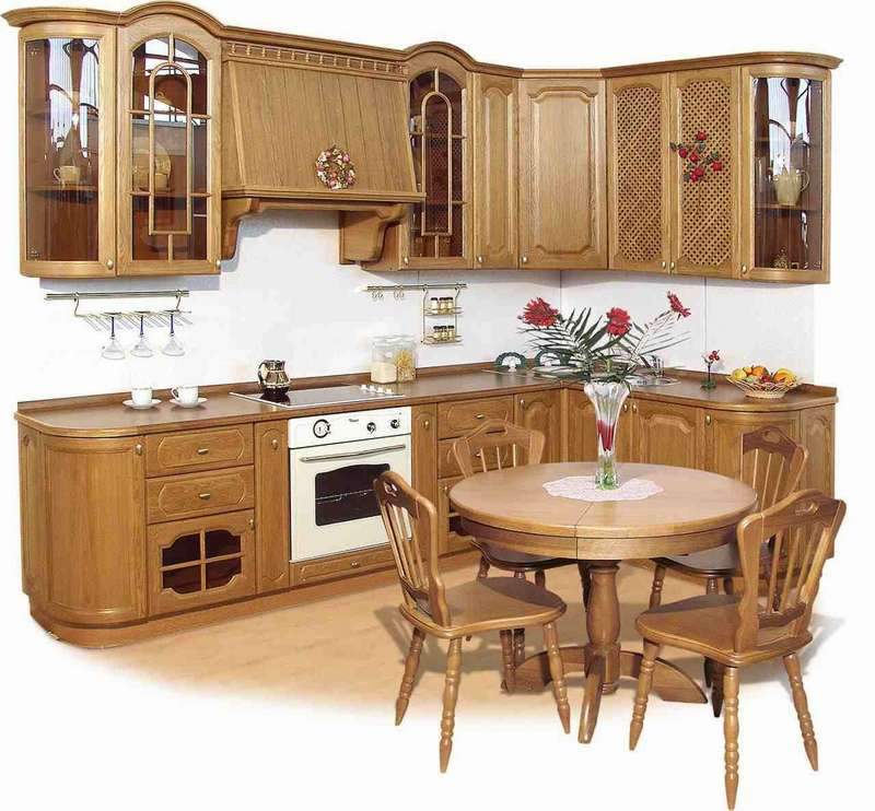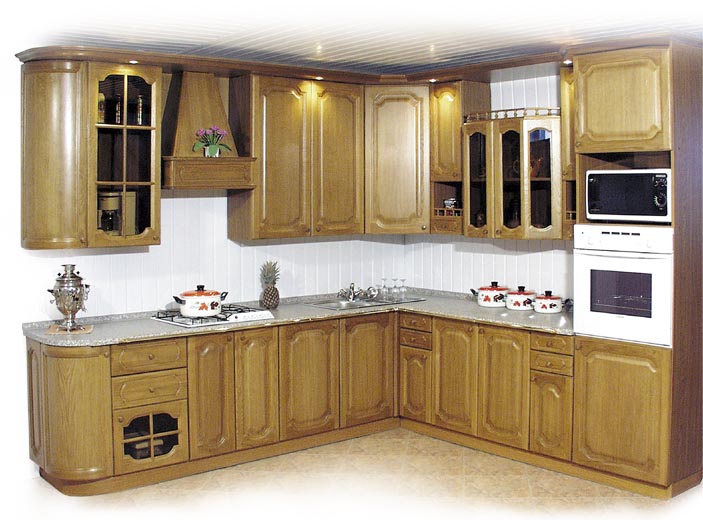 У нас Вы можете заказать угловые кухни любых размеров под Ваш проэкт, дизайн. Стандартов у нас нет - все индивидуально. Также поможем подобрать дизайн и внутренние наполнение кухни. Кухня делается из массива натурального дерева. Варианты дерева - дуб, ясень, клен, сосна, ольха, липа. Кухни из дерева экологически чистые и долговечностью. Возможно изготовление кухни из дерева: