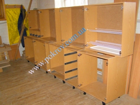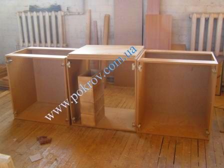 Сборка кухонных тумбочек в производственном цеху