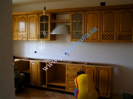 Фоторепортаж выполнения проекта "Кухня фасад из масива натурального дуба, каркас - дсп (Прямая)"