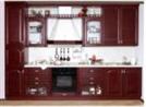 Кухня из массива натуральной вишни ассоциируется со спокойной размеренной жизнью. Благодаря декоративному, очень красивому оттенку древесины вишни розовато - коричневого цвета, ее можно не перегружать перегружена излишними деталями и аксессуарами, а вот мягкий резной рисунок на дверках, стеклянные витражи с традиционным орнаментом и закругленность форм, будут очень кстати и придадут изысканности. По твердости вишня существенно мягче предыдущих пород, но хорошо поддается всем видам обработки.