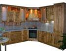 Украсят такую мебель и навесные шкафчики со стеклами-витринами, и каминные вытяжки, помогая создать теплую гостеприимную атмосферу на кухне. Особая технология обработки материалов привнесет стилистику старины - гвозди под старину, натуральные трещины, как бы изъеденные жучком поверхности, плетеный фасад, элементы из искусственно состаренной бронзы. Многое в такой мебели делается вручную - резьба по дереву, окраска и полировки дверец лаком, тонировка и старение фасадов.